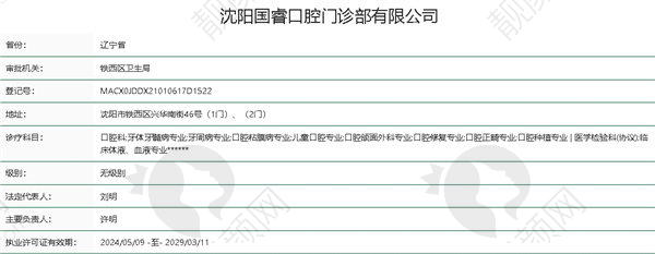六、沈阳国睿口腔门诊部基本信息:
